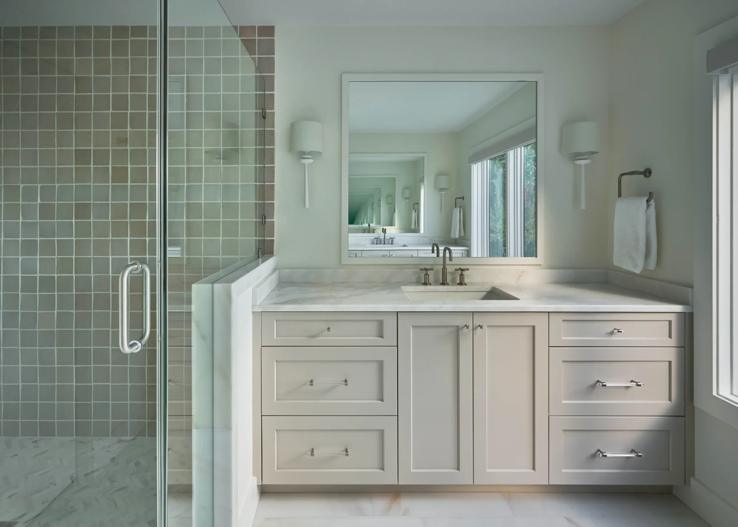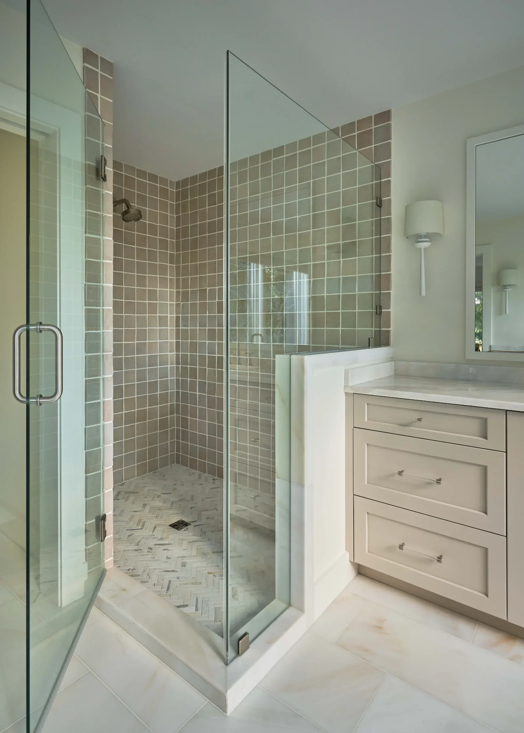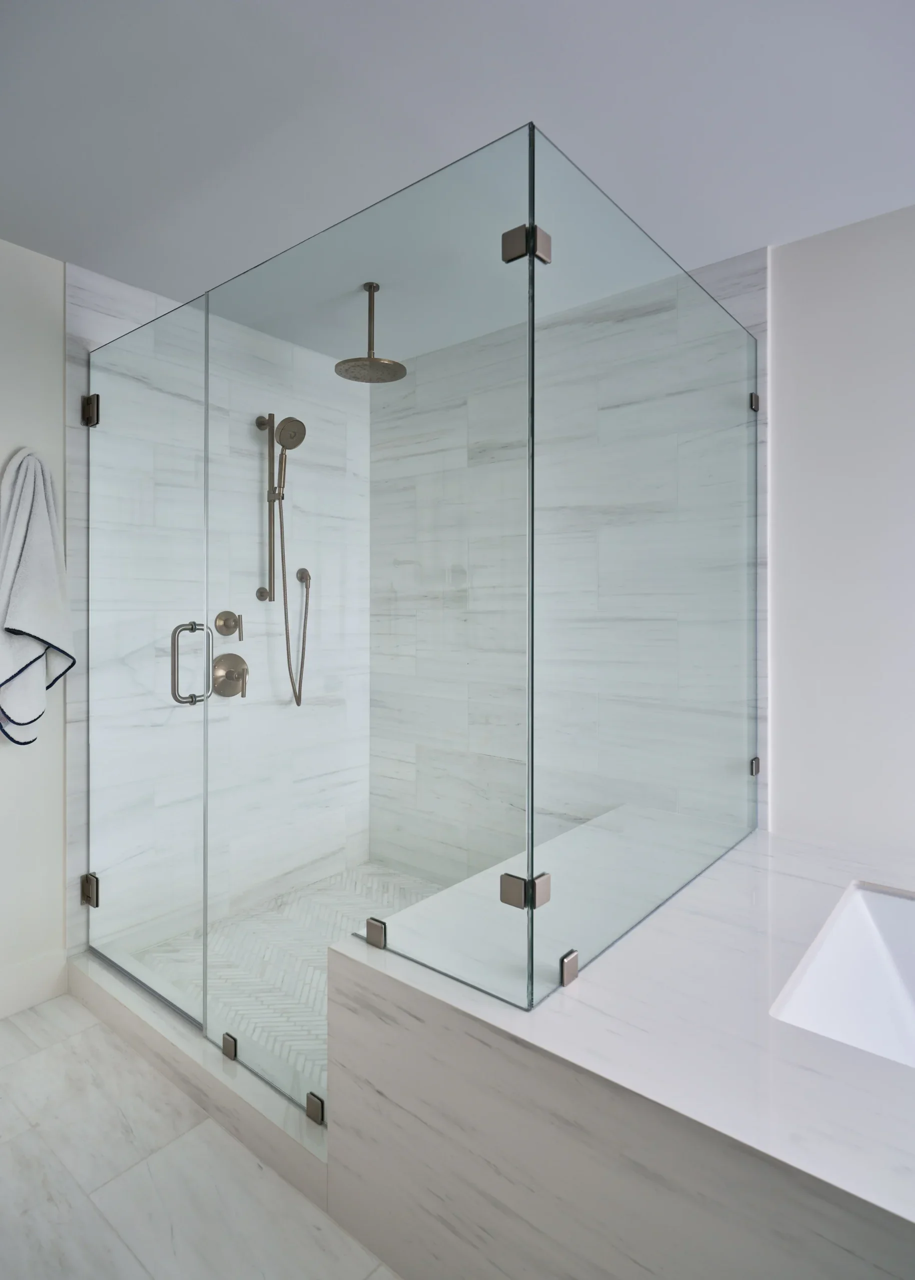 Reimagined to support the client’s lifestyle, these bath renovations open and simplify the spaces, allowing the materials and coastal influence to take center stage. Partnering with the builder, the designs replace dated soffits with open layouts and introduces larger showers for a more functional, elevated experience.